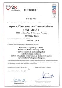 Créée le 15 octobre 1990, l’AGence d’Exécution des Travaux Urbains (AGETUR) est une société anonyme avec Conseil d’Administration ayant pour objet social de recevoir la délégation de maîtrise d’ouvrage pour tout type de projet, d’assurer la gestion concédée des équipements et infrastructures publics, d’entreprendre toute opération immobilière. Société Anonyme au capital de 1,2 milliard FCFA, l’AGETUR a comme principaux actionnaires le personnel, les collectivités locales, le patronat du Bénin et l’Etat béninois.