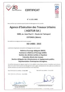 Créée le 15 octobre 1990, l’AGence d’Exécution des Travaux Urbains (AGETUR) est une société anonyme avec Conseil d’Administration ayant pour objet social de recevoir la délégation de maîtrise d’ouvrage pour tout type de projet, d’assurer la gestion concédée des équipements et infrastructures publics, d’entreprendre toute opération immobilière. Société Anonyme au capital de 1,2 milliard FCFA, l’AGETUR a comme principaux actionnaires le personnel, les collectivités locales, le patronat du Bénin et l’Etat béninois.